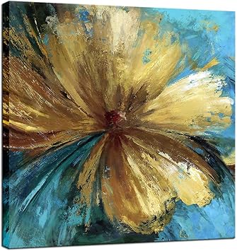 Biuteawal Modern Canvas Flower Wall Art Abstract Gold Floral Blue Background Paintings On Canvas Still Life Artwork For Home Kitchen Living Room